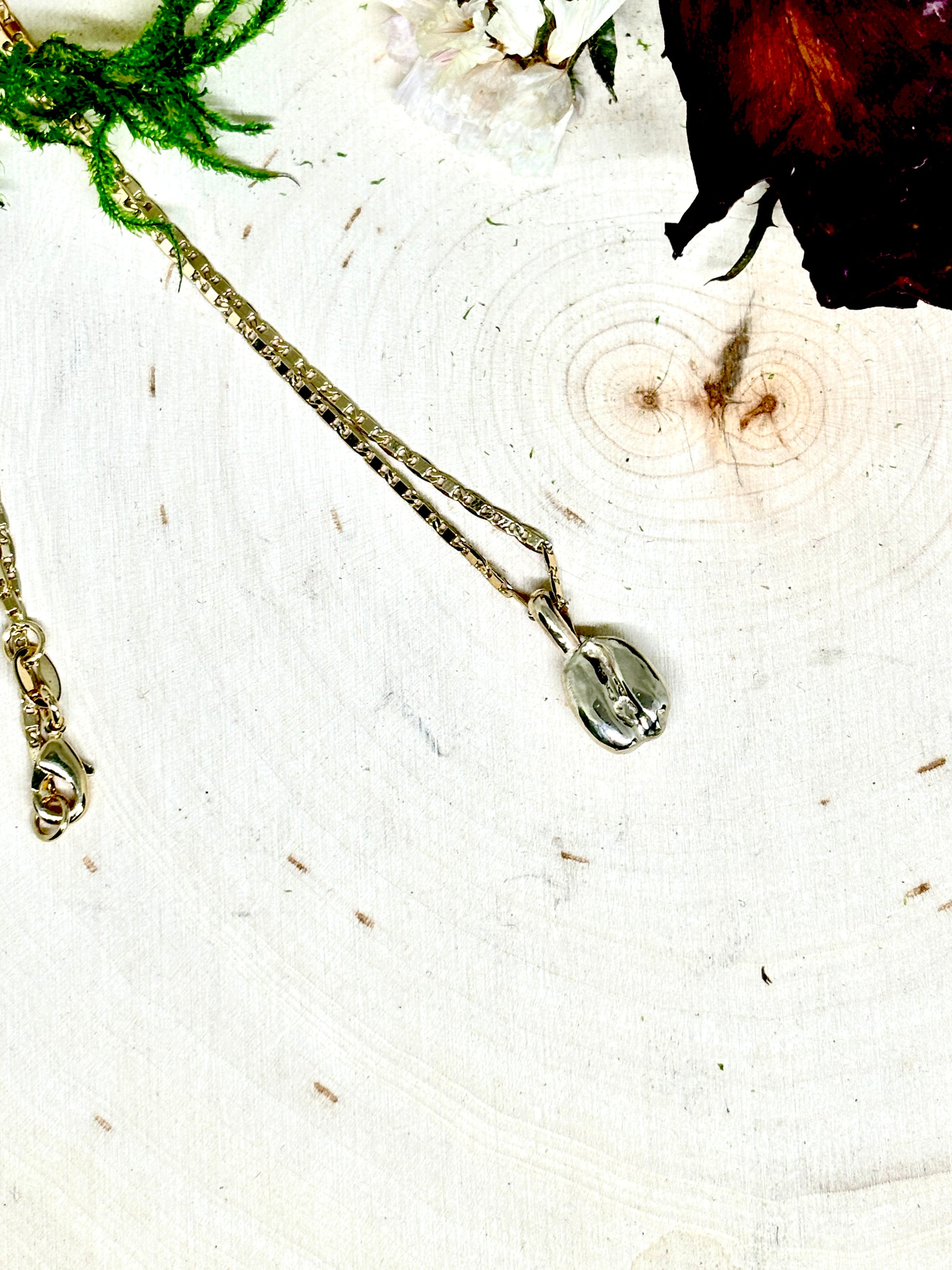 Enhance your coffee cravings with our Bronze Coffee Bean charm. Skillfully sand casted, this brass coffee bean is the perfect addition to any coffee lover's charm collection. Let it bring a touch of warmth and shine to your everyday style.