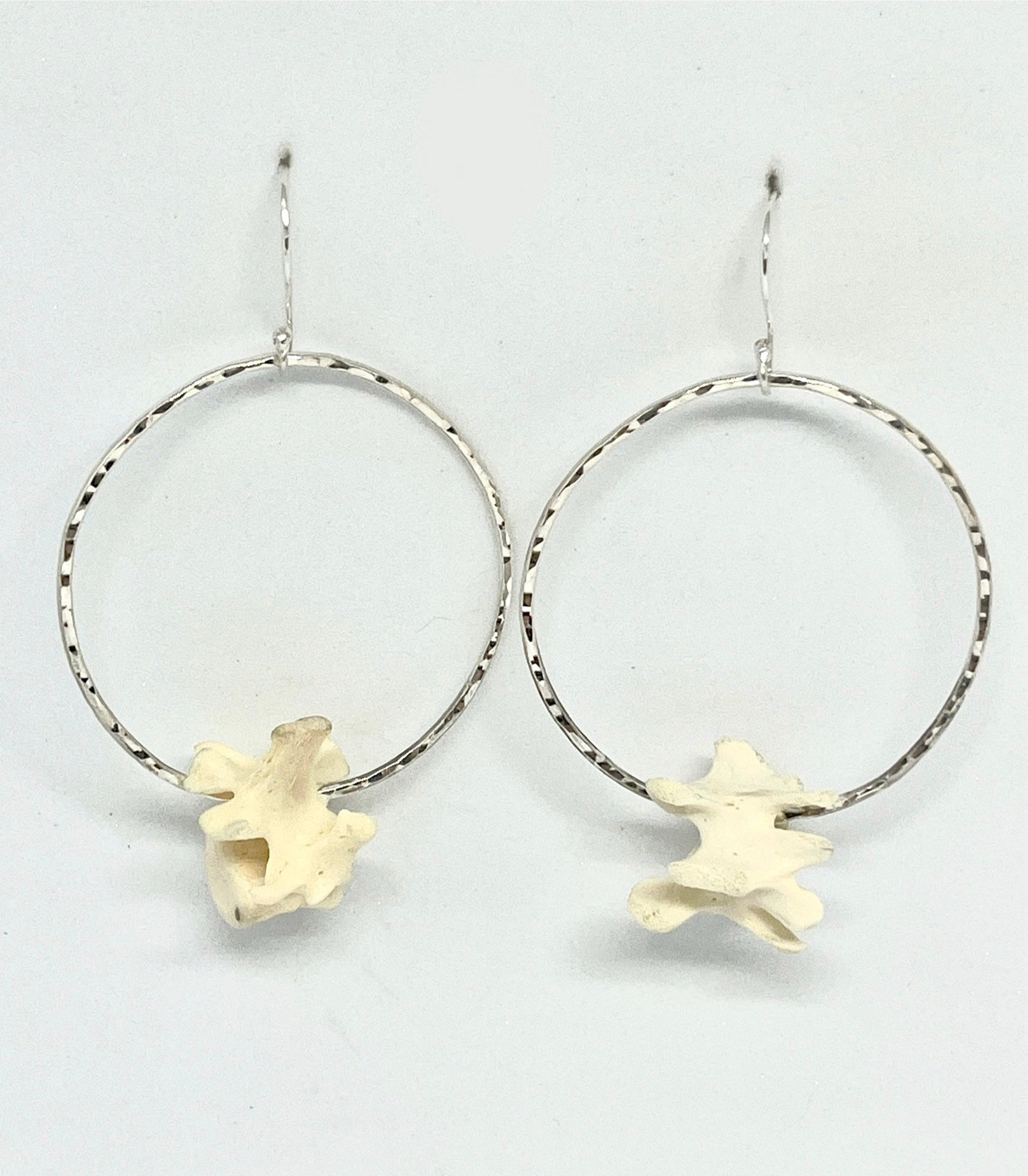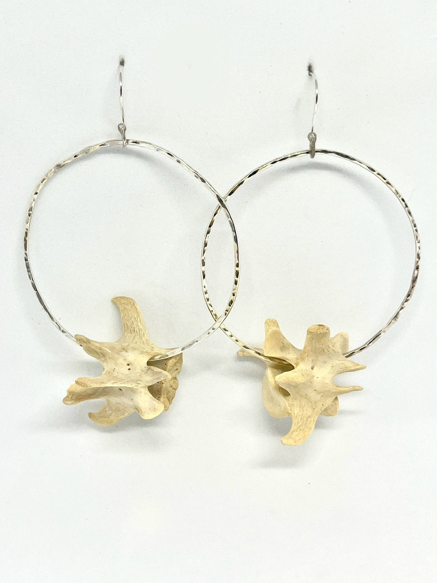Experience the edgy elegance of nature with these Vertebrae Hoops! Crafted from sterling silver and ethically sourced animal bones, they add a bold and unique touch to any ensemble. Dare to be different and make a statement with these timeless pieces!