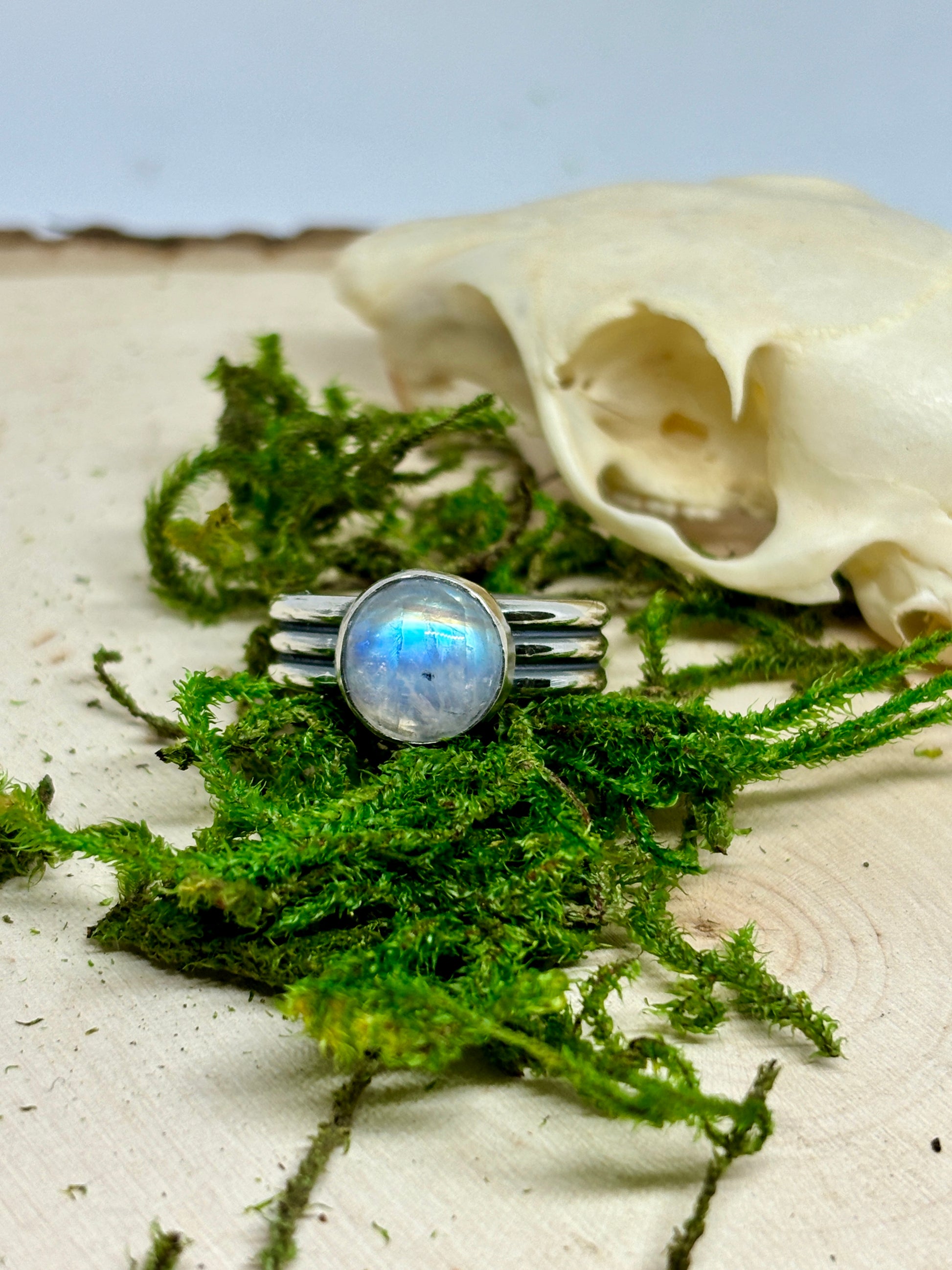 Simple and elegant, the Moonstone Ring is a stunning piece handmade from sterling silver. The beautiful moonstone brings a touch of natural beauty to any outfit.