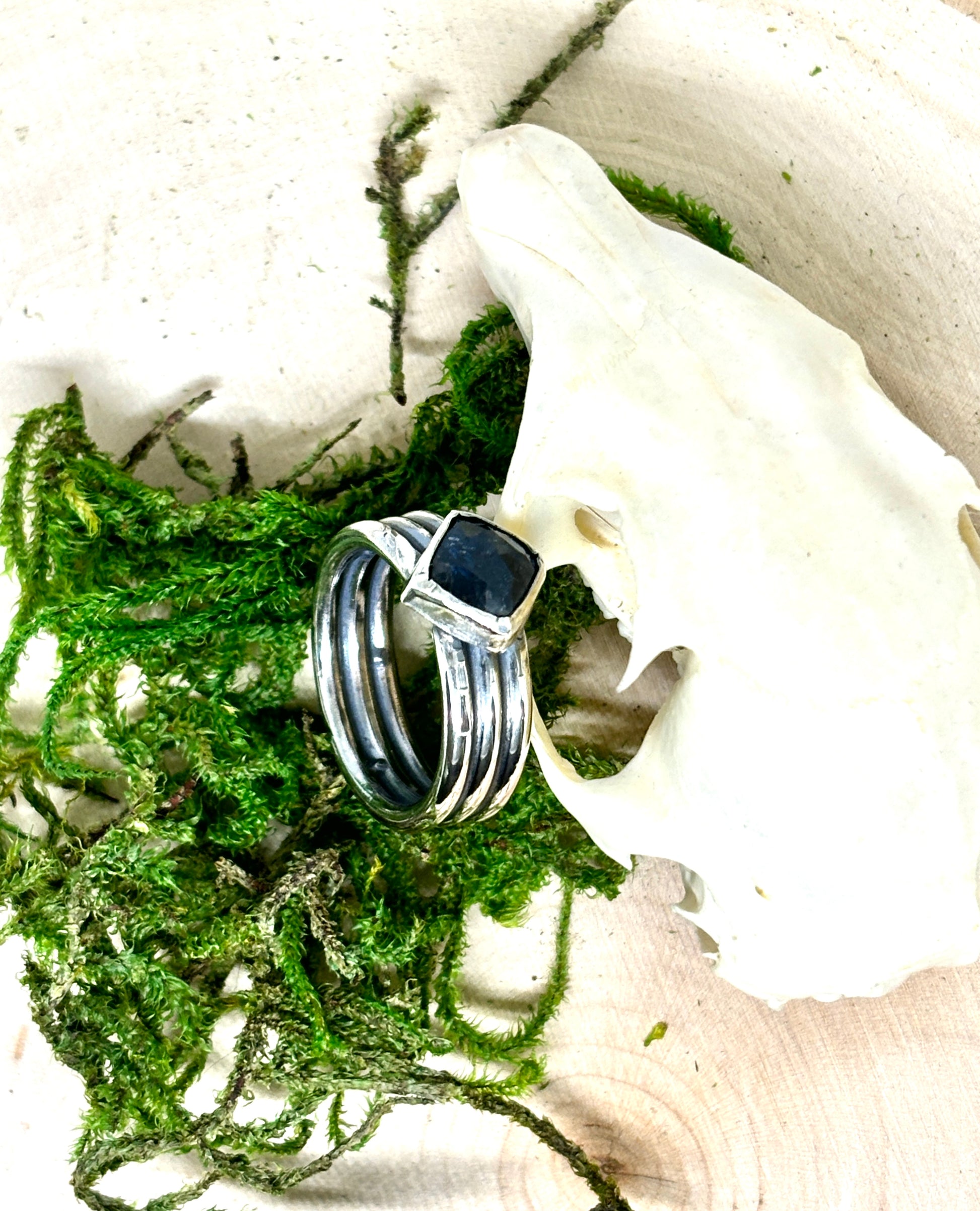 This Moss Kyanite Ring is handcrafted from sterling silver for a unique and elegant look. A beautiful addition to any outfit.