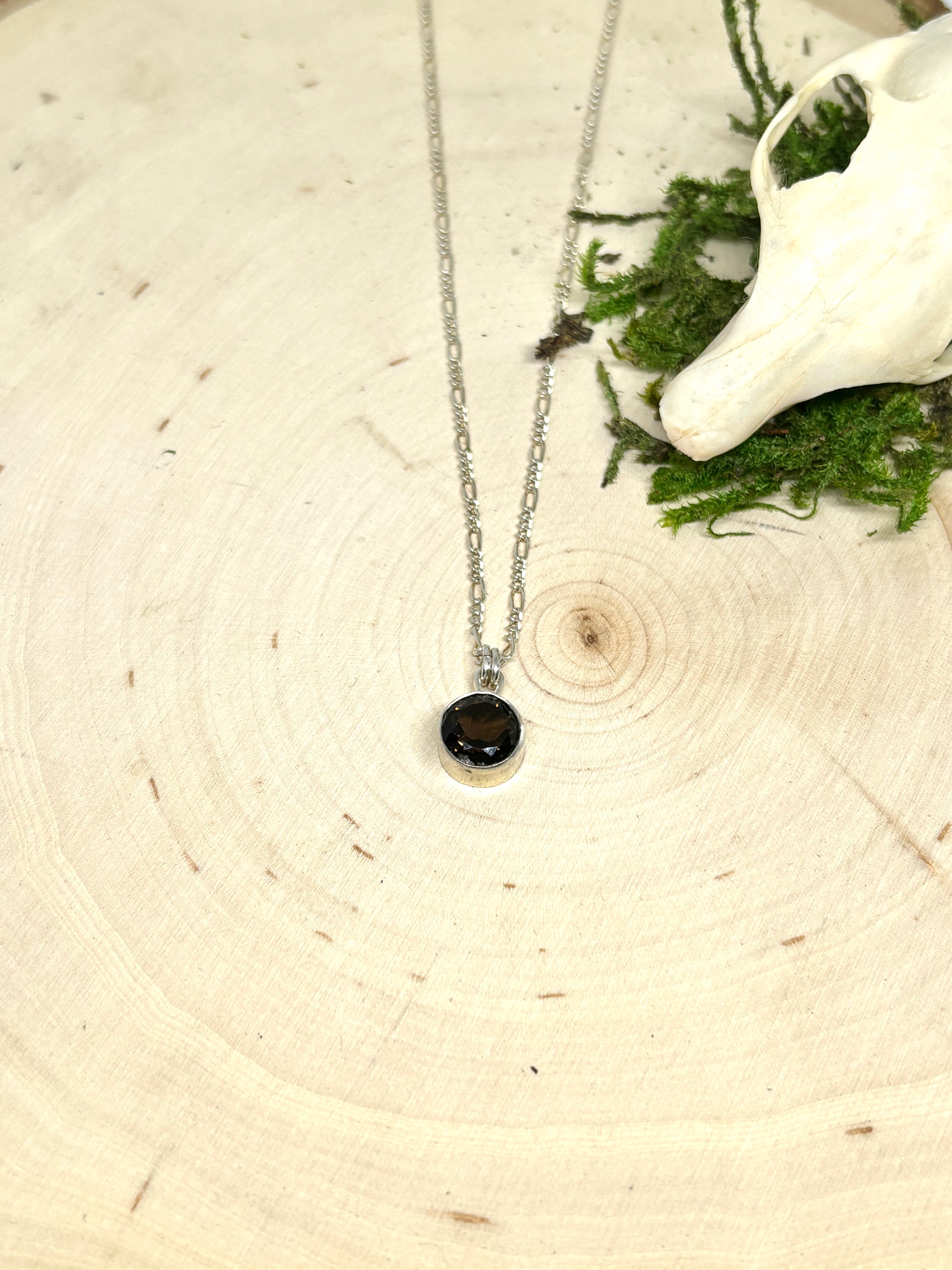 Indulge in the timeless elegance of our Smoky Quartz Necklace. The 18'' figaro chain adds a touch of sophistication, while the faceted smoky quartz gemstone adds a mesmerizing sparkle.